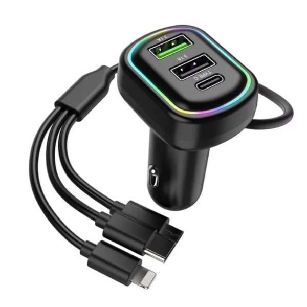 CARGADOR PARA AUTO 48W 2 PUERTOS USB 1 USB C 3 EN 1 (MX)