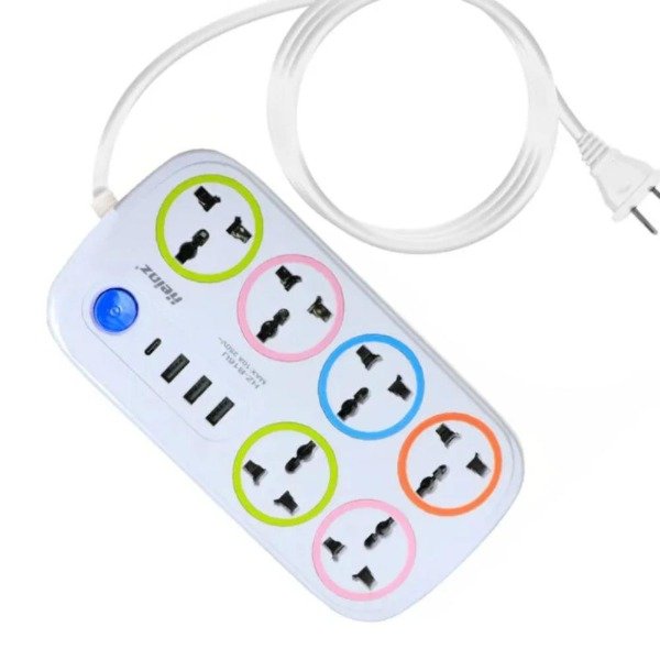 ZAPATILLA ALARGUE 6 ENCHUFE 3 PUERTOS USB Y 1 TYPE C MODELO (MX)